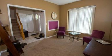 Spacious Family room. Large enough for oversized sectional couch with room to move all the way around.